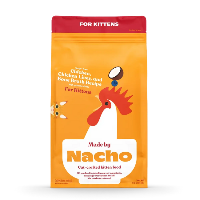 Made by Nacho believes in providing your pet with meals packed with nutrients. Our cat food is a blend of proteins, grains, fruits, and vegetables, delivering a well-rounded diet for your feline. It is laced with taurine, essential for maintaining your cat's heart health and eyesight.