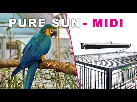 PureSun-Midi is the perfect choice for most cages 2’/60cm wide or more in which medium sized pet birds such as lineolated parakeets, Conures, Cockatiels, Senegal Parrots, Meyers Parrots, Dwarf Macaws, small lorikeets, Lovebirds and Parrotlets or Softbills live. PureSun-Midi can also be used for pairs or groups of smaller species living in larger flight type or breeding cages such as Budgerigars, finches, canaries and diamond doves.