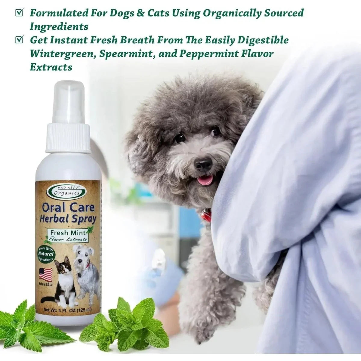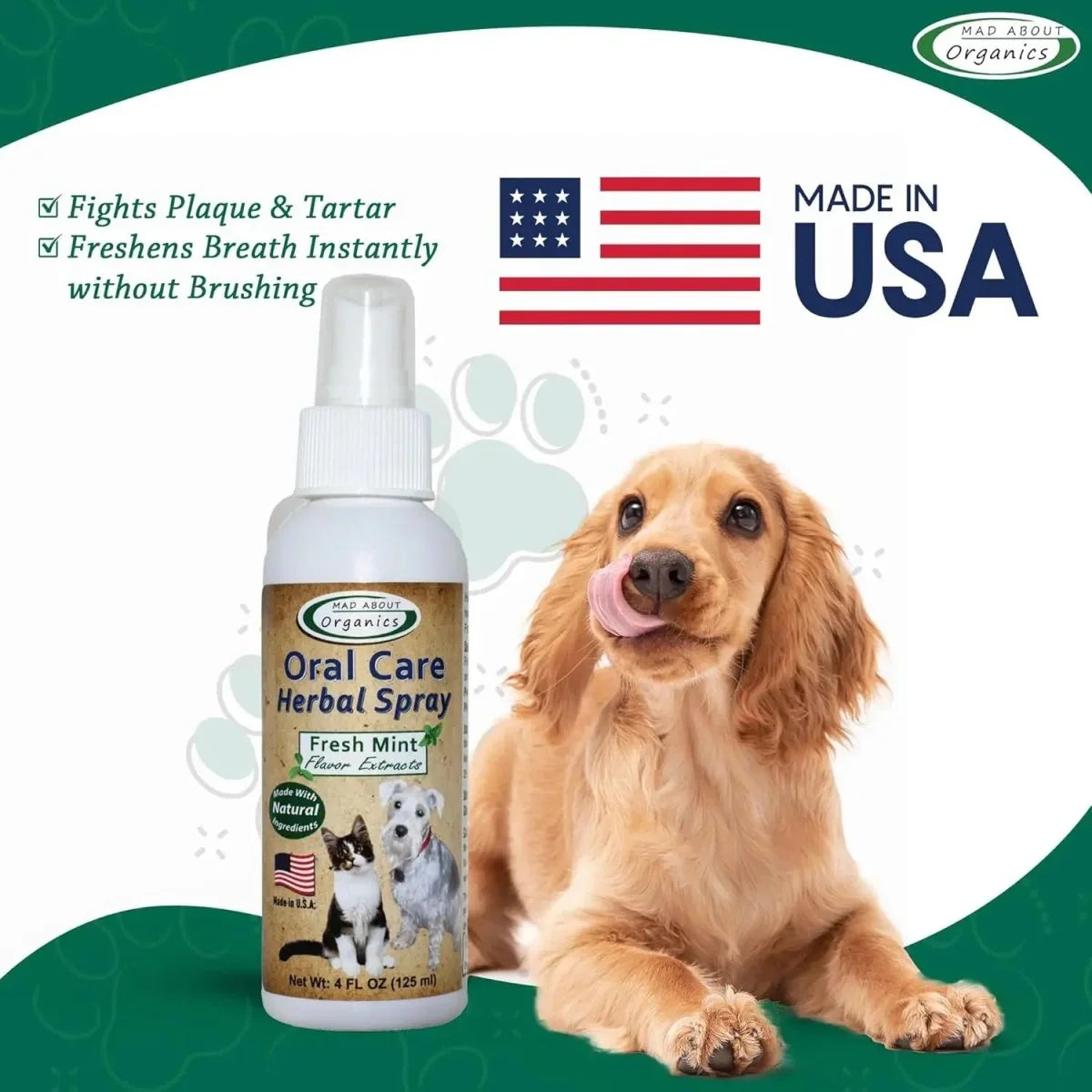 Give your pet the fresh breath they deserve with Mad About Organics Oral Care Spray - Fresh Mint Formula. This gentle yet effective spray works instantly to banish bad breath, leaving your furry friend feeling fresh and lovable. With a formula specially designed to help remove plaque and tartar, it supports healthier teeth and gums while keeping their smile bright. Easy to use and made with pet-safe ingredients, it’s the perfect addition to your pet’s daily care routine. Simply spritz, and enjoy cuddle time with your happy, healthy companion!